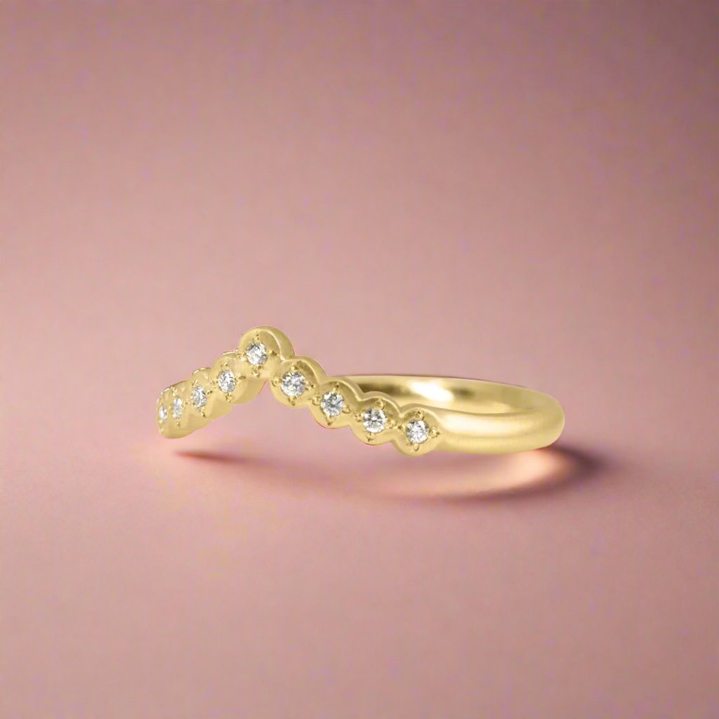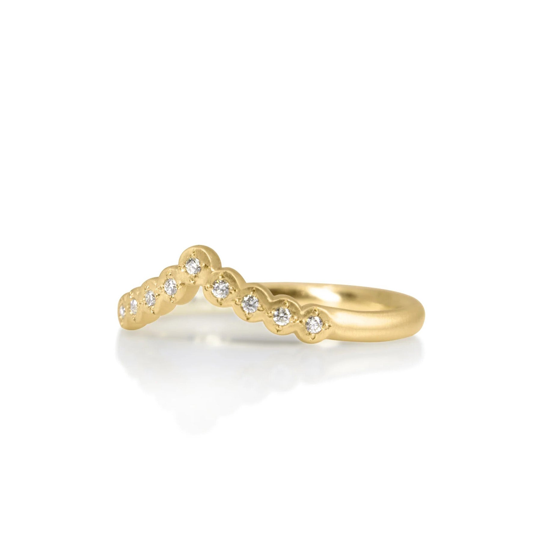 Diamonds are hand set into individual 18-karat yellow gold bubbles on this distinctive band.