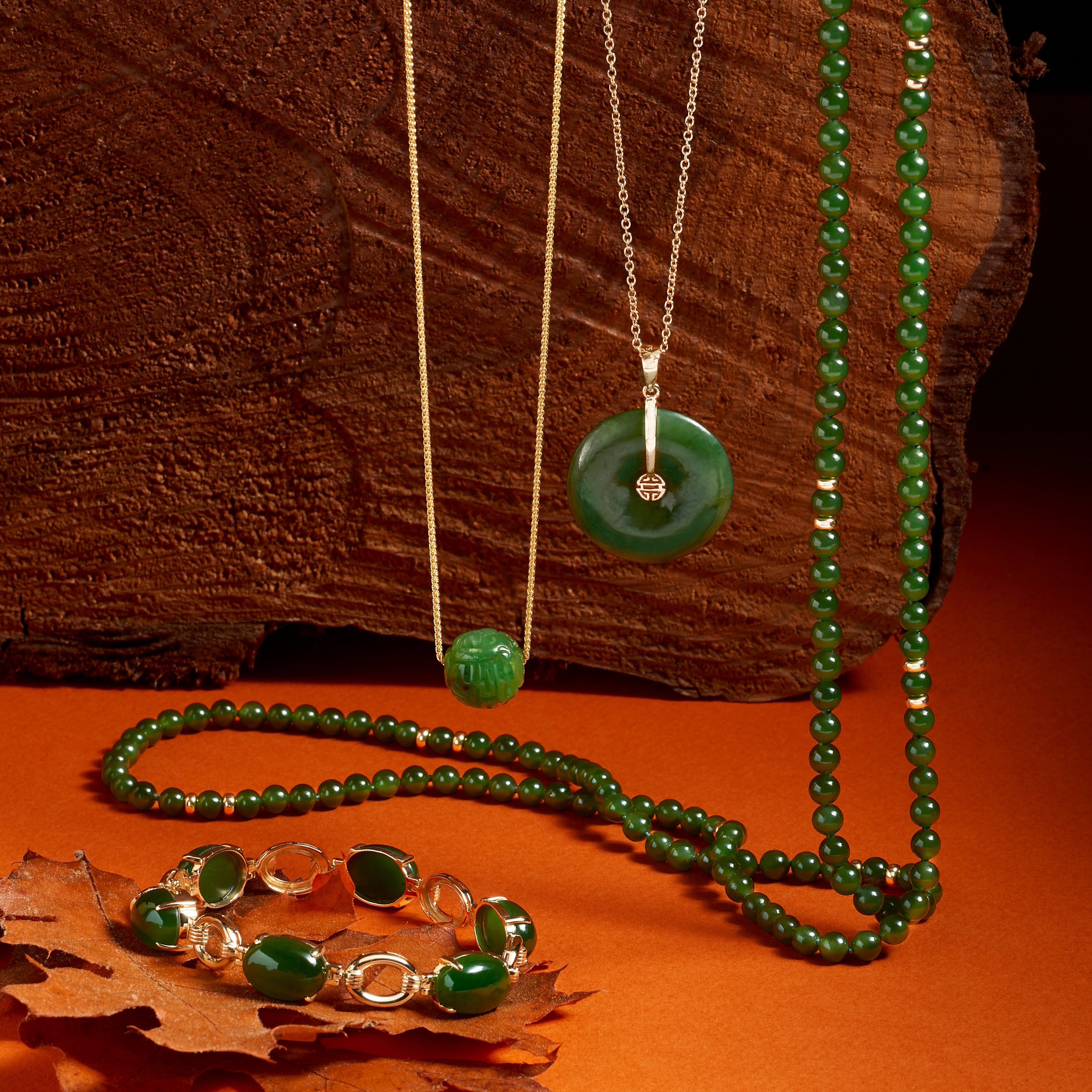 Green Nephrite Jade Pi & Diamond Pendant Necklace