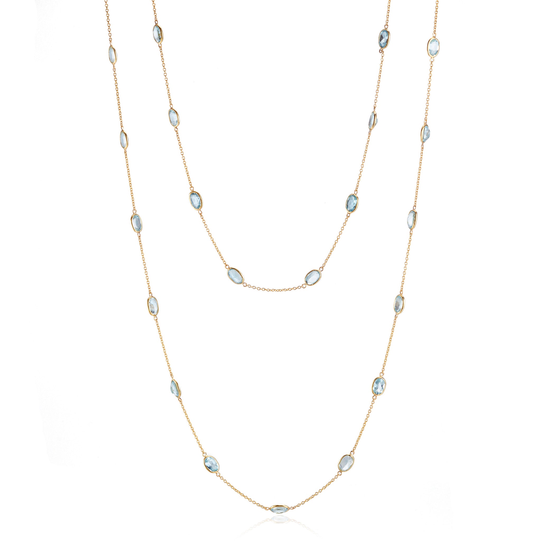 Oval Aquamarine Long Station Necklace