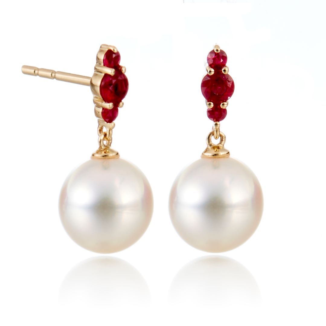 Orion Earrings in White Akoya Pearls & Rubies
