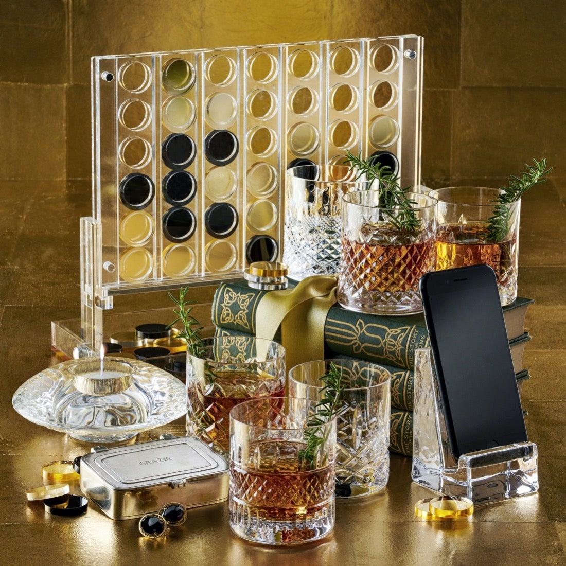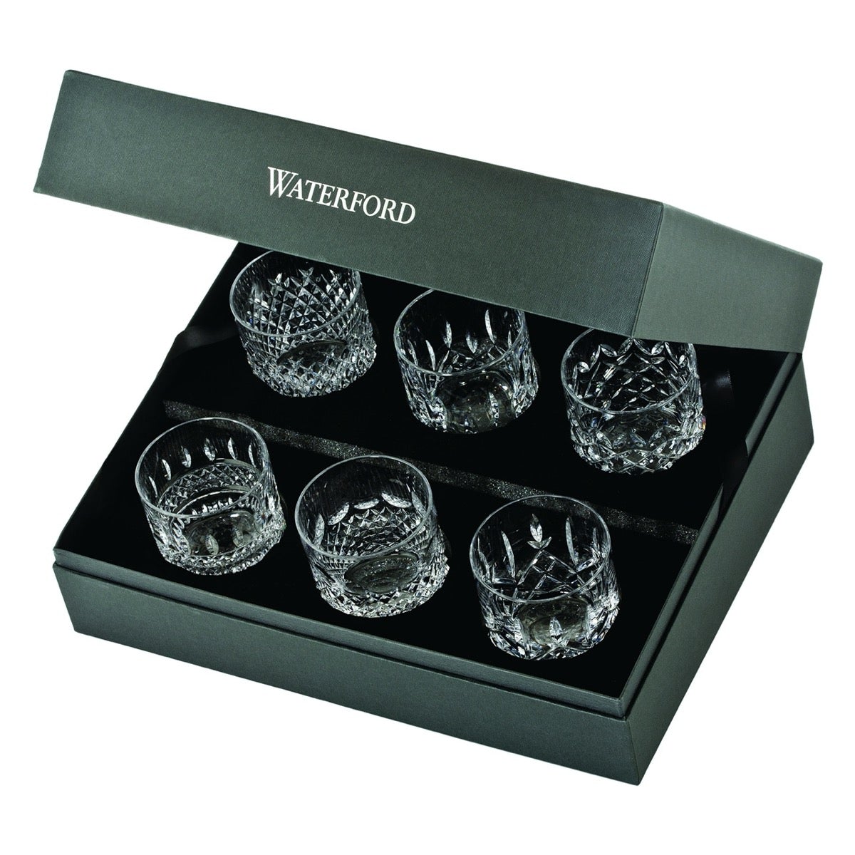 The Heritage set includes six straight-sided glasses, each cut with an iconic Waterford pattern: Lismore, Colleen, Alana, Powerscourt, Araglin and Irish Lace. Perfect for the longtime enthusiast or connoisseur of whiskeys, these tumblers feature a universal shape wide enough for the liquor to breathe.