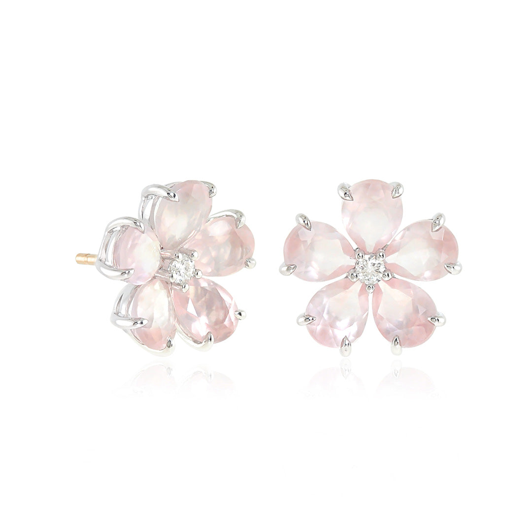 Forget-Me-Not Earrings in Rose Quartz & Diamonds