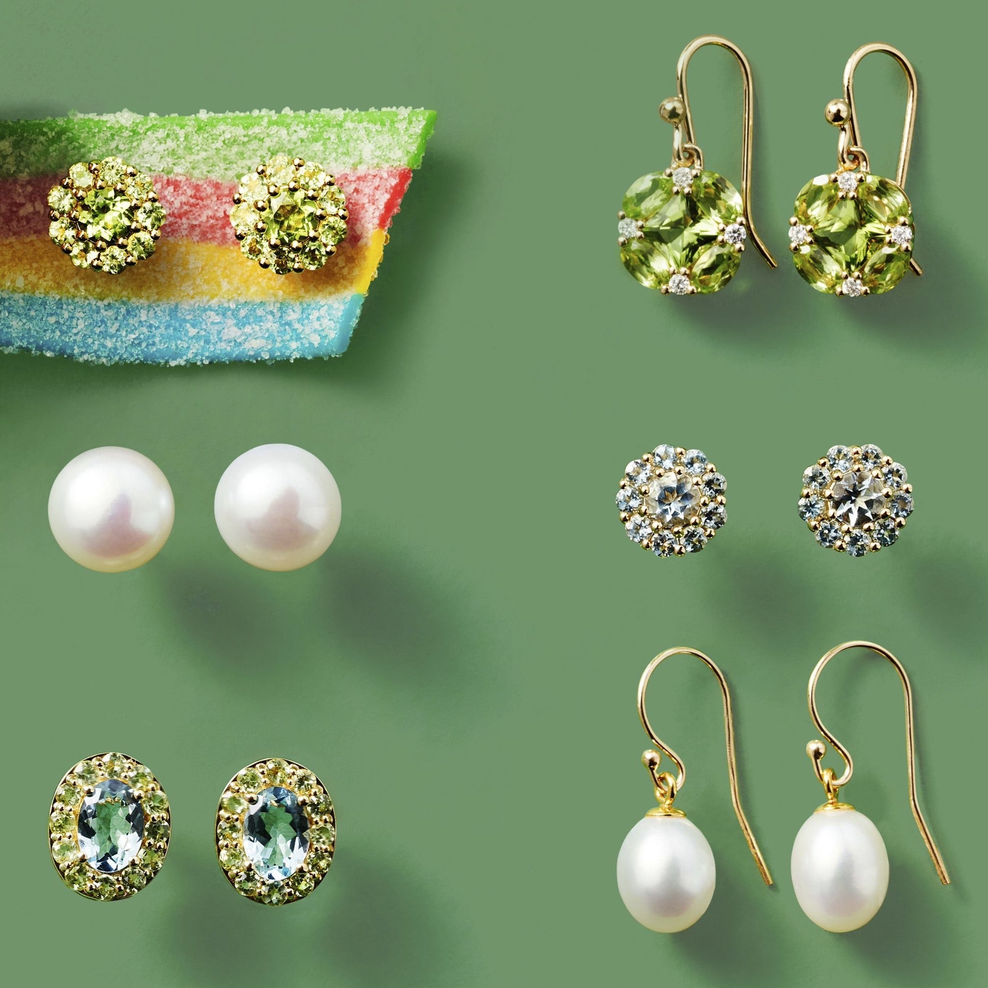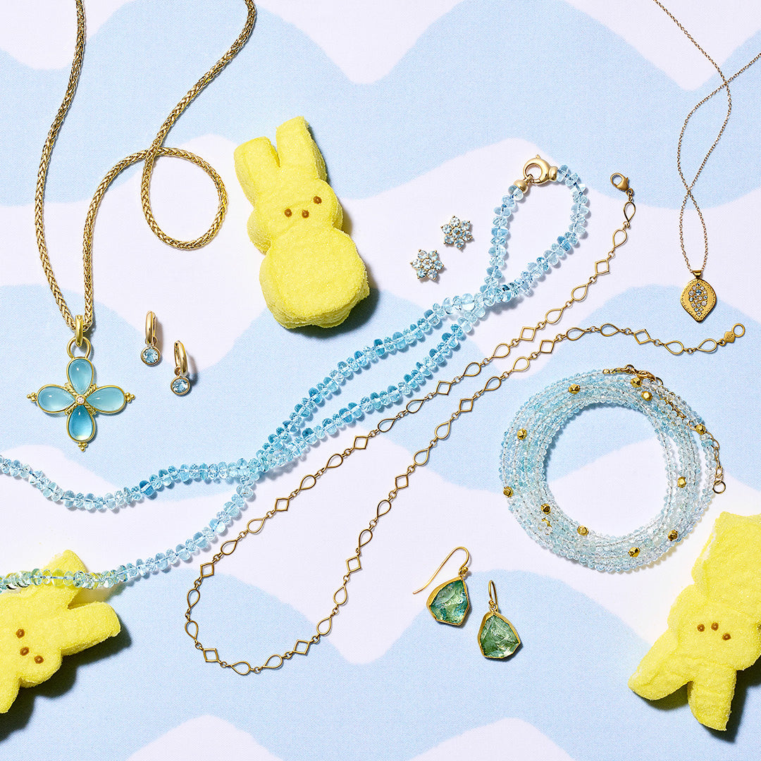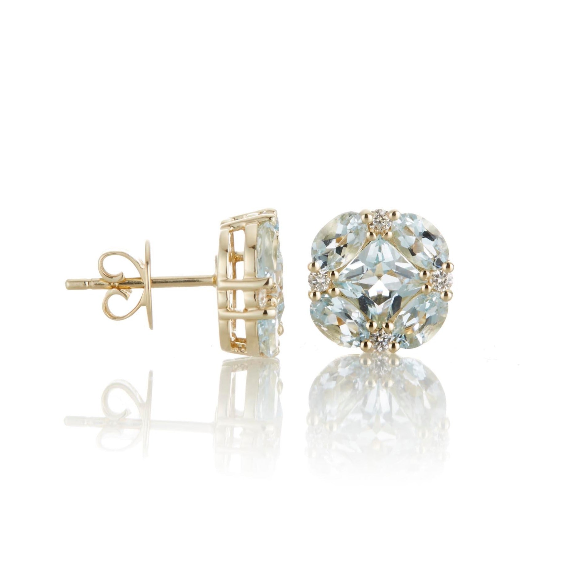 Quadrille Stud Earrings in Aquamarines & Diamonds