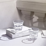Adding dimension to your favorite cocktails, this pair of exceptional crystal tumblers features deep bevels that capture the light in a striking interplay of reflections. And that's something to celebrate.