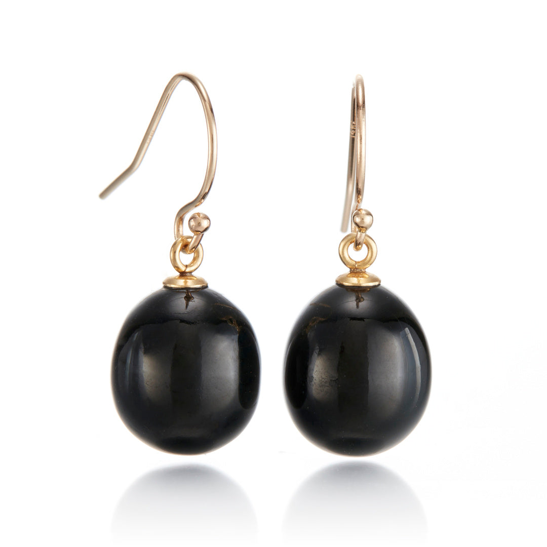 Black Nephrite Jade Oval Drop Earrings