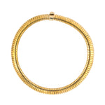 This mid-century gooseneck bracelet in rich 18-karat gold features a tubular, articulated design that moves with fluid grace, epitomizing the sleek versatility of postwar jewelry design.
