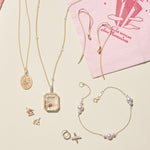 We offer complimentary gift packaging — a signature gold-lidded gift box with hand-tied satin ribbon — on all jewelry orders.