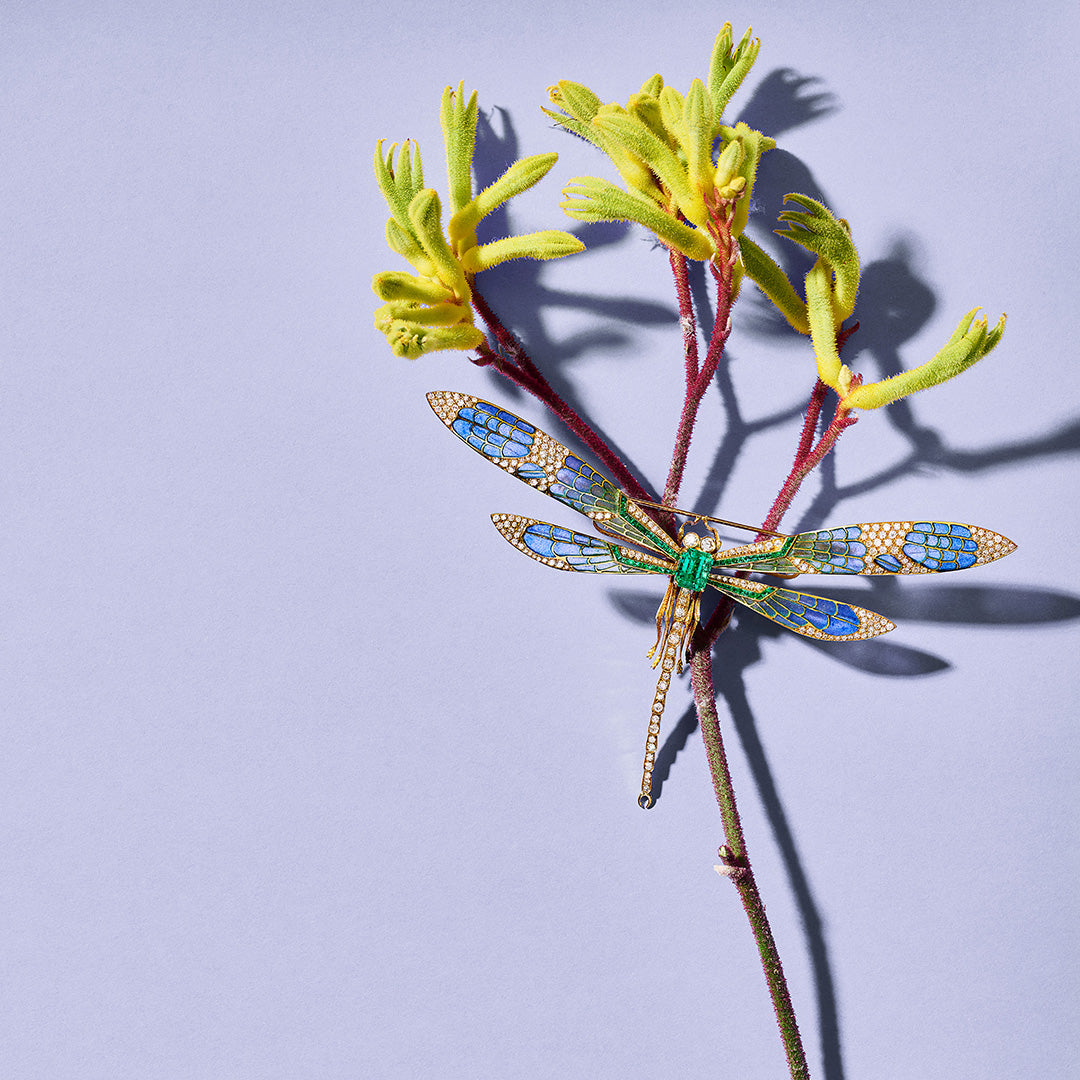 Plique-à-Jour Emerald & Diamond Dragonfly Brooch