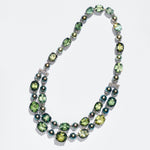 The definition of a showstopper, this necklace alternates myriad shades of green tourmaline gemstones with lustrous Tahitian pearls, anchoring its half-strand with diamond bars as the perfect finishing touch. Cicada is recognized for its striking designs inspired by the Art Deco and Art Nouveau movements as well as the natural world. Each exceptional piece is handcrafted with meticulous attention to detail by master artisans in New York City.