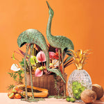 The crane is the most esteemed bird in Chinese lore, and its presence an omen of good fortune. Hand cast in recycled aluminum and handpainted with a verdigris patina, this graceful pair will make a welcome addition to the home — indoors or out.