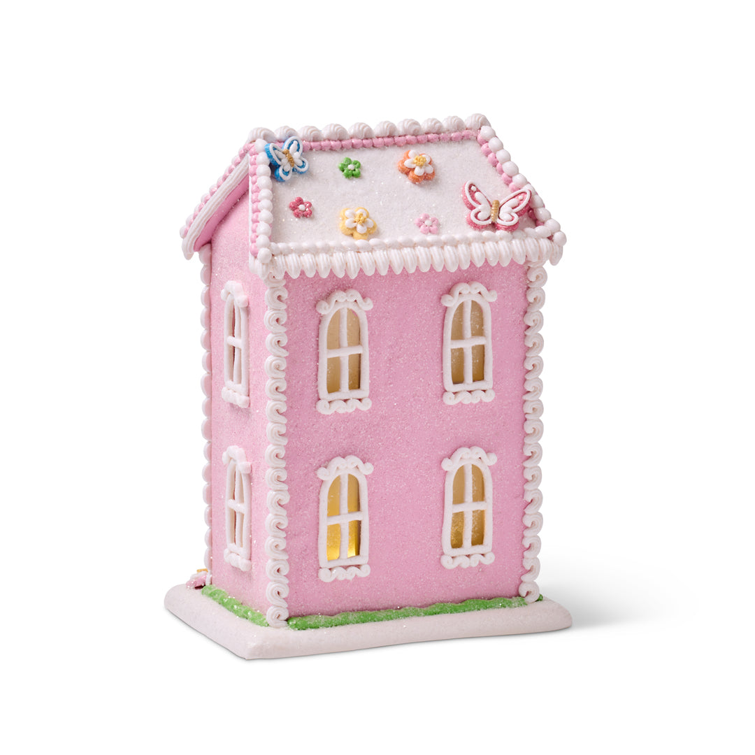 A delightful nod to spring’s sweetest moments, this handcrafted house charms with its frosting-like trim, colorful butterflies and candy-pink finish. Lit from within, the house glows with a gentle warmth — set the built-in timer for six hours of cheer, and it will repeat daily without a second thought. Made of hand-sculpted clay dough, it’s a festive accent destined to become a seasonal favorite.