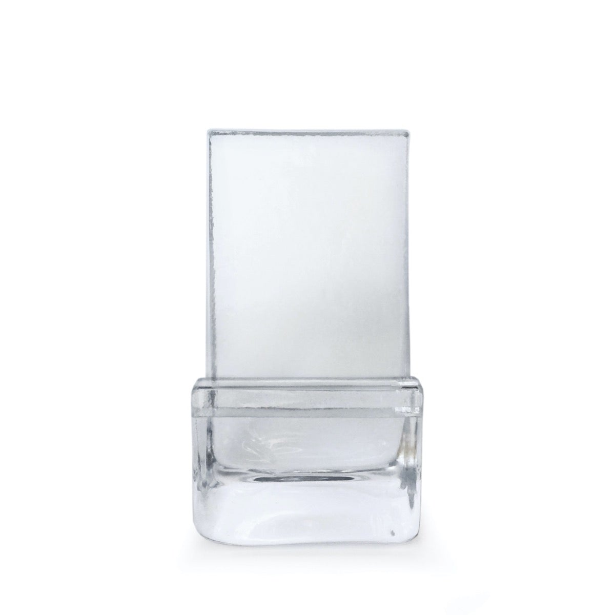 A smart handcrafted glass solution for keeping smart phones or tablets upright and close at hand.
