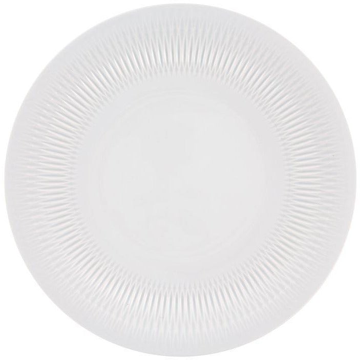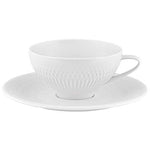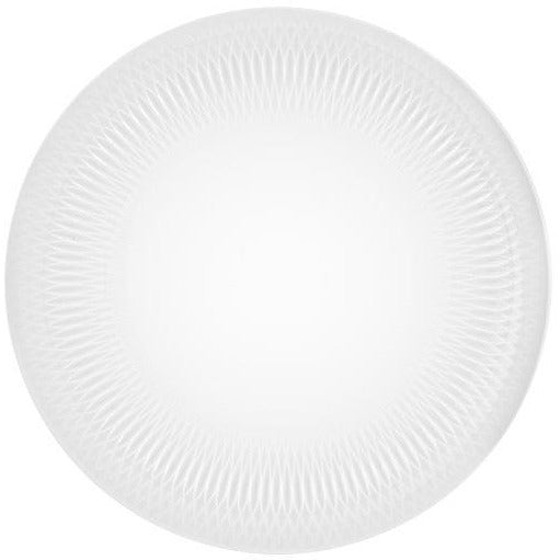 Crafted of porcelain, this distinctive dinnerware features various reliefs inspired by ruffles applied to origami, the Japanese art of paper folding. This place setting is part of Vista Alegre's elegant Utopia collection, a recipient of the 2018 Red Dot Award. Founded in 1824 by José Ferreira Pinto Basto, Vista Alegre is a storied Portuguese brand celebrated for its expertly crafted glassware and ceramics. Dinner plate: 11 1/2" diam.; salad/desert plate: 9" diam.; bread & butter plate: 6 3/4" diam.; teacup: 2 1/2"H and saucer. Dishwasher- and microwave-safe. Made in Portugal.
