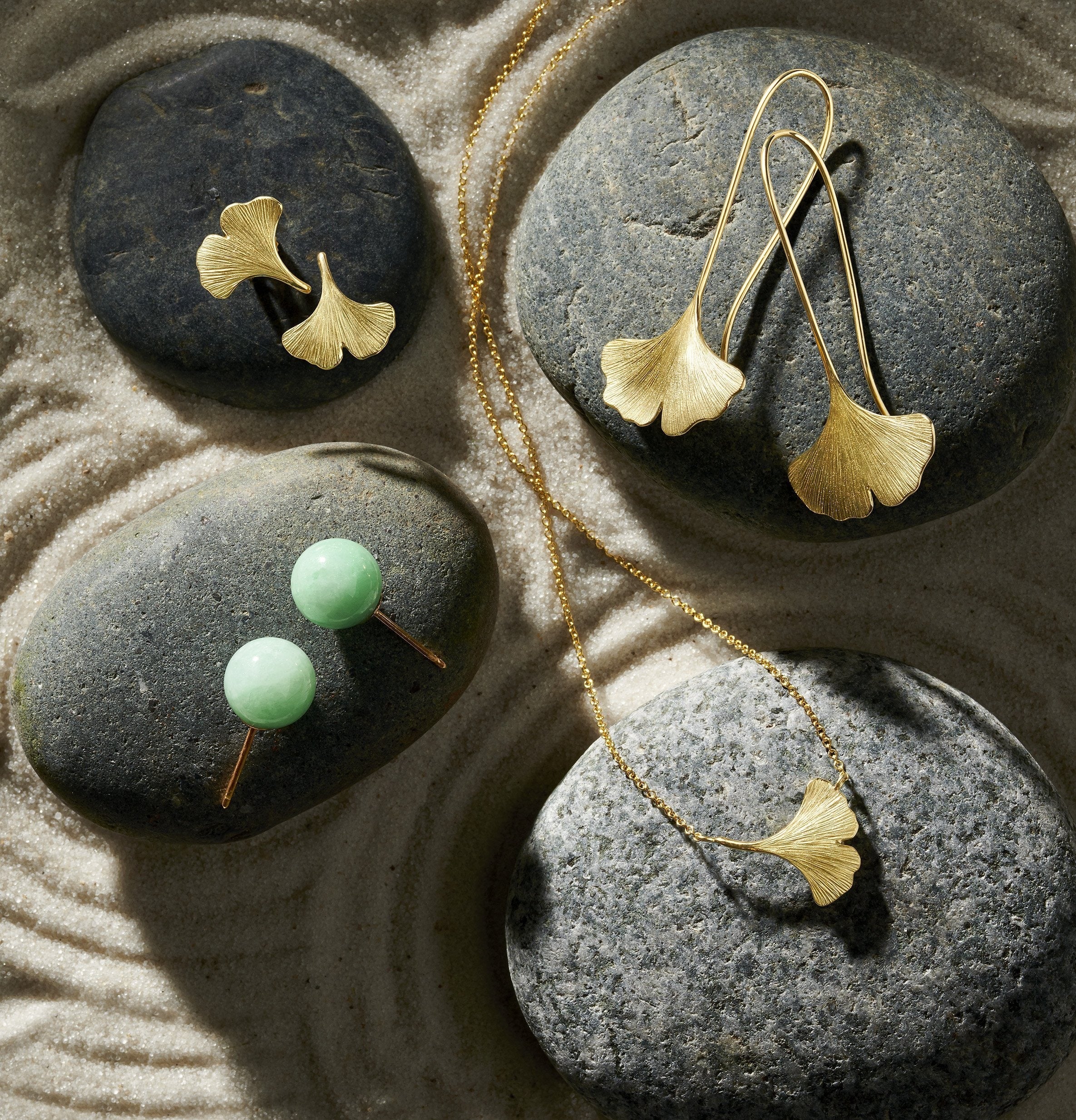 A symbol of strength, hope and peace, the ginkgo leaf comes from one of the oldest surviving species of tree known to exist, with a botanical history spanning more than 200 million years. 18-karat yellow gold. Pierced only. 1 3/4"L x 7/8"W.
