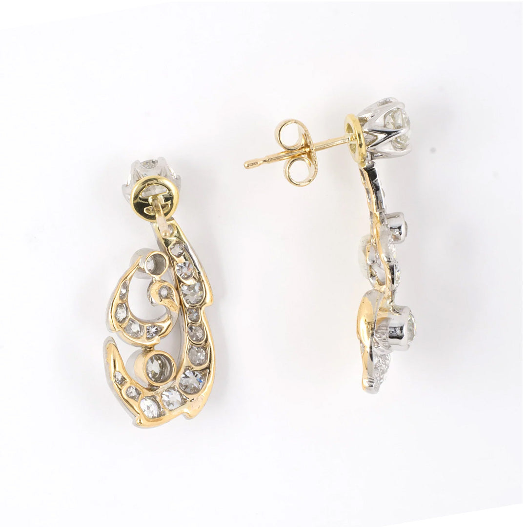 Edwardian French Sapphire & Diamond Drop Dangle Earrings