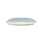A tapestry of Aztec-inspired geometry unfolds in saturated threads of aruba blue, ginkgo green and cobalt, lending a dynamic rhythm to this pillow's finely woven surface.