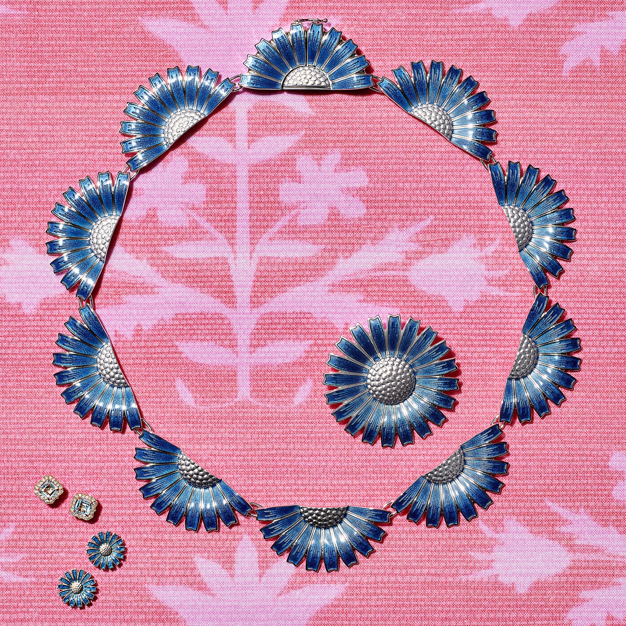 Blue Daisy Pendant Necklace