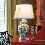 Featuring a pattern inspired by glorious water lily pads on a lake, this elegant porcelain lamp has a hexagonal lucite base, brass hardware and a metal ball finial. John Loecke and Jason Oliver Nixon are the guiding force behind Madcap Cottage, a global lifestyle brand based on North Carolina that encompasses sophisticated fun, history, whimsy and grace.