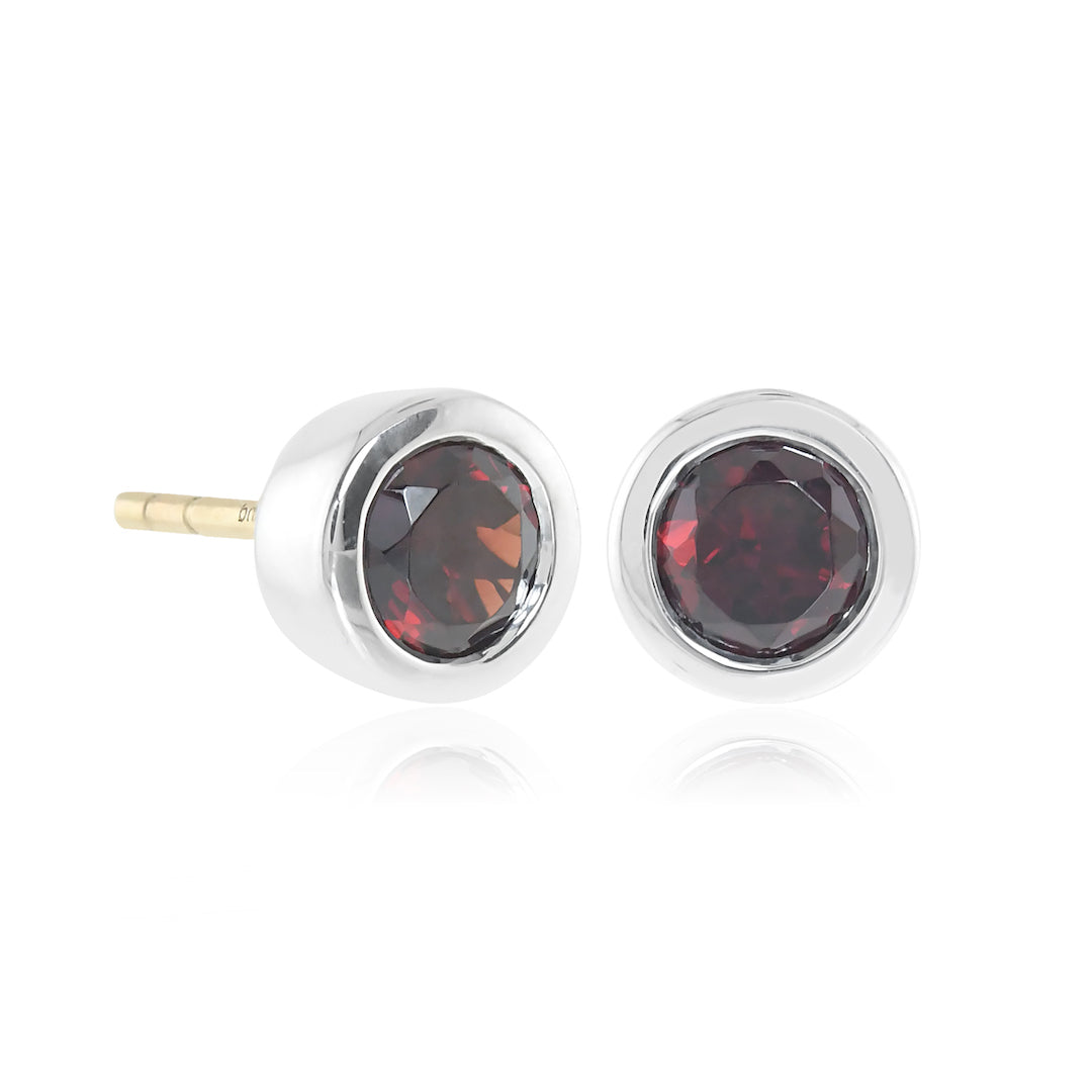 Silver Mini Dot Earrings in Garnet