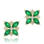 A stunning mix of gemstones set in 18-karat yellow gold, these petite earrings feature a star of emeralds surrounded by sparkling diamonds.