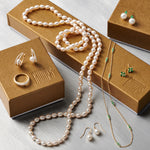 We offer complimentary gift packaging — a signature gold-lidded gift box with hand-tied satin ribbon — on all jewelry orders.