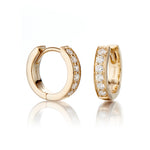 Our gold hoops are set with a row of brilliant diamonds, bringing crisp geometry to a close-fitting silhouette.