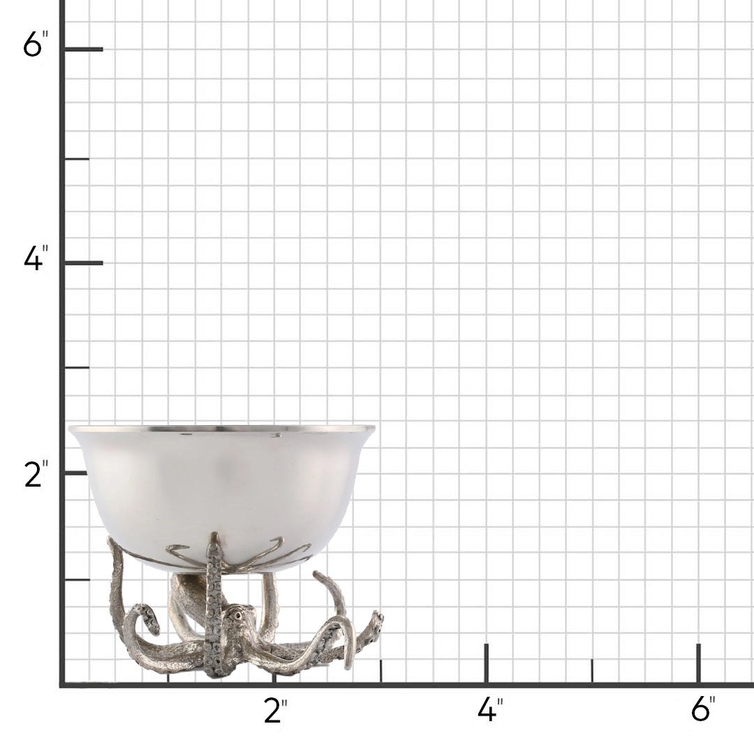 This mighty mini octopus is in over its head. Handcrafted of pewter, it supports a polished stainless-steel bowl for serving everything from dipping sauces to butter pats to fresh berries.