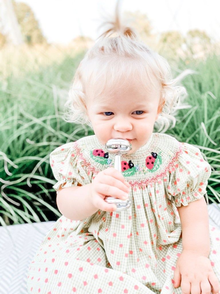 A thoughtful gift for welcoming a new arrival — and a precious heirloom-in-the-making — this sterling silver dumbbell rattle makes a delightful jingle that will be music to the little one's ears. Located in the town of Easton, Maryland, Salisbury has been creating finely handcrafted metal products since 1979. Inspired by the work of early American silversmiths, their designs are reinvented by highly skilled artisans into prized pieces made to be cherished for years to come.