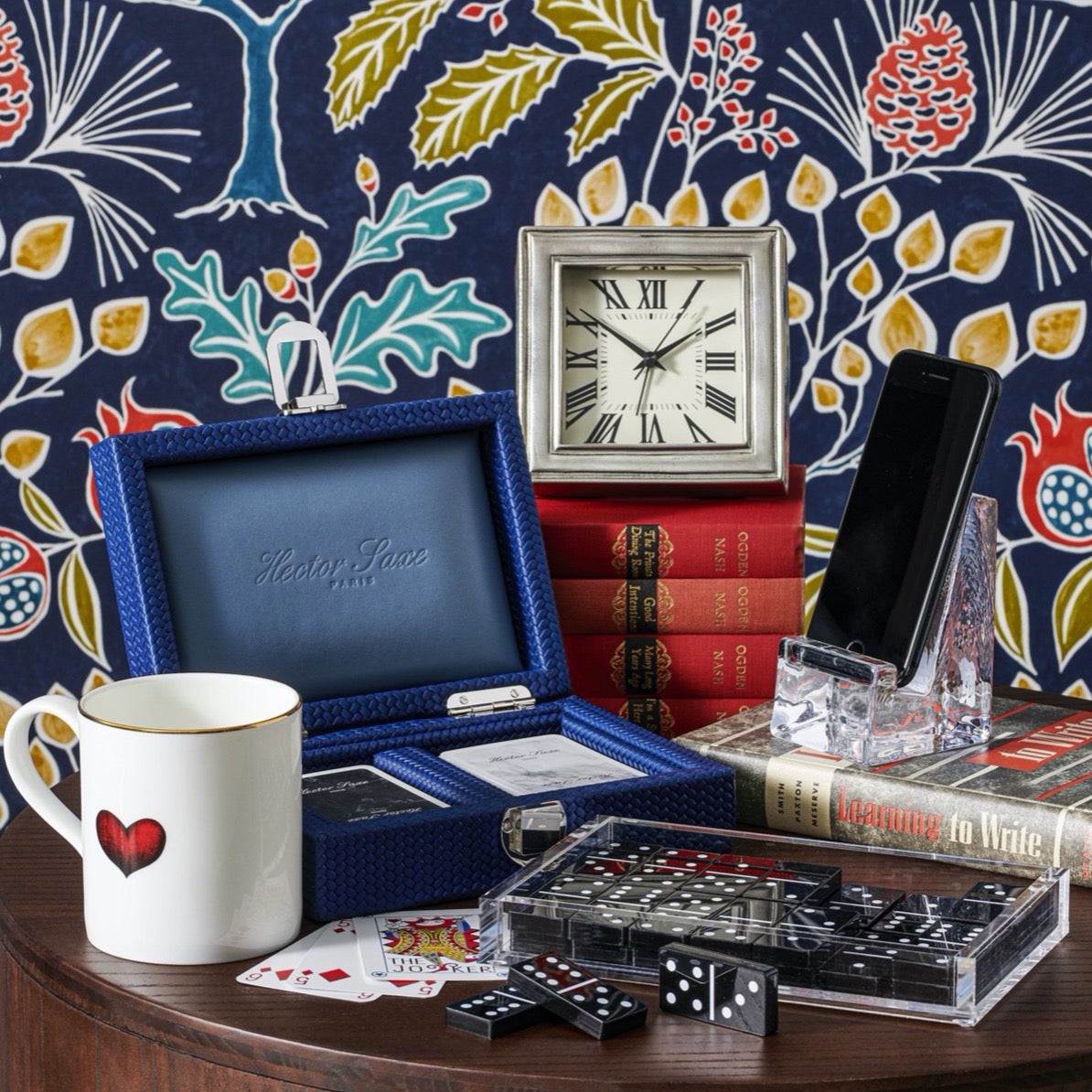 A smart handcrafted glass solution for keeping smart phones or tablets upright and close at hand.