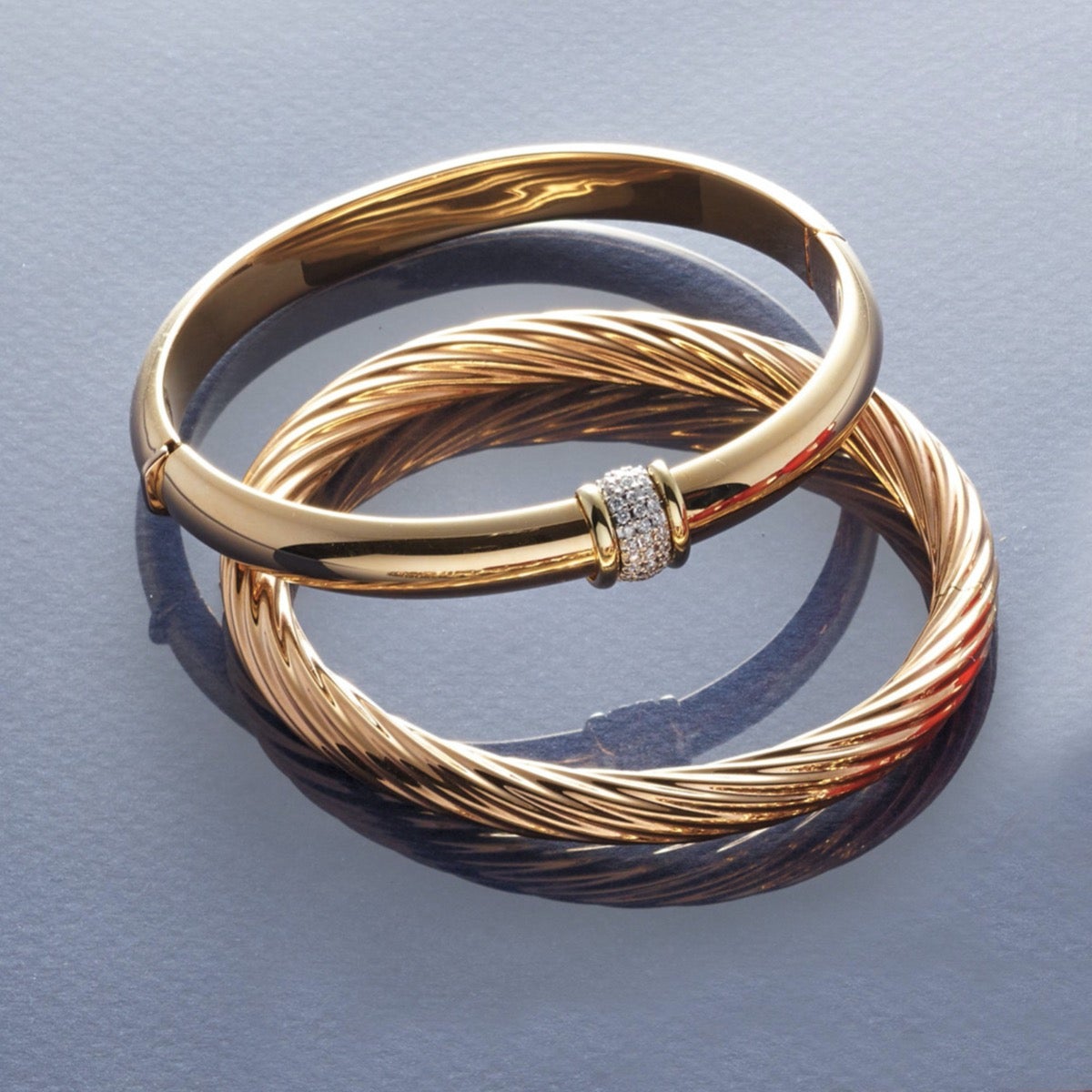 The perfect finishing touch to day or evening wear, this stunning hinged bangle is crafted of yellow gold and embellished with shimmering pavé diamonds. Since 1861, Gump's has been a destination for jewelry that is distinctive and timeless. To ensure each piece is created to our exacting standards, our expert in-house jewelry team oversees every step of the production process. The result is a statement of pure elegance.
