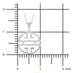 Made of silver, this pendant necklace features the Gump's shou — the symbol of long life and prosperity — surrounded by white sapphires.