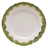 Made of white porcelain and handpainted by master artisans in Hungary, this elegant plate is bordered in green and 24-karat yellow gold. Herend’s porcelain creations feature a signature pattern that dates back to 1858, when a fish-scale decoration inspired a craftsman to create a similar design imitating feathers. 6" diam.