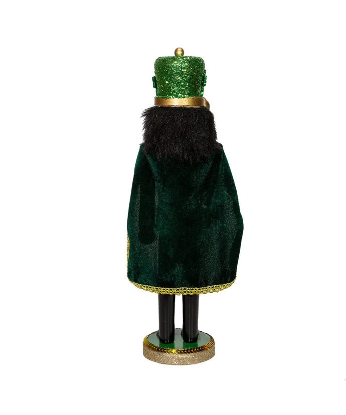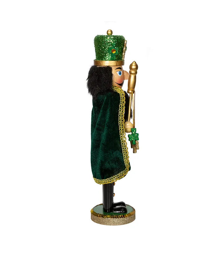 Wearing a sparkling green cape and shamrock accents, our nutcracker brings a touch of Celtic cheer to the holiday season. With his golden staff in hand, he’s ready to stand guard while spreading a bit of luck and festive spirit.
