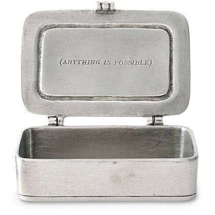 Handcrafted in northern Italy from lead-free pewter, this inspiring box highlights the metal’s warm luster. Its exceptional durability ensures years of enjoyment. Every item produced for Match, curators of the premier collection of artisanal Italian pewter, features timeless design, traditional craftsmanship and exceptional quality. 3 3/4"L x 2 1/2"W.