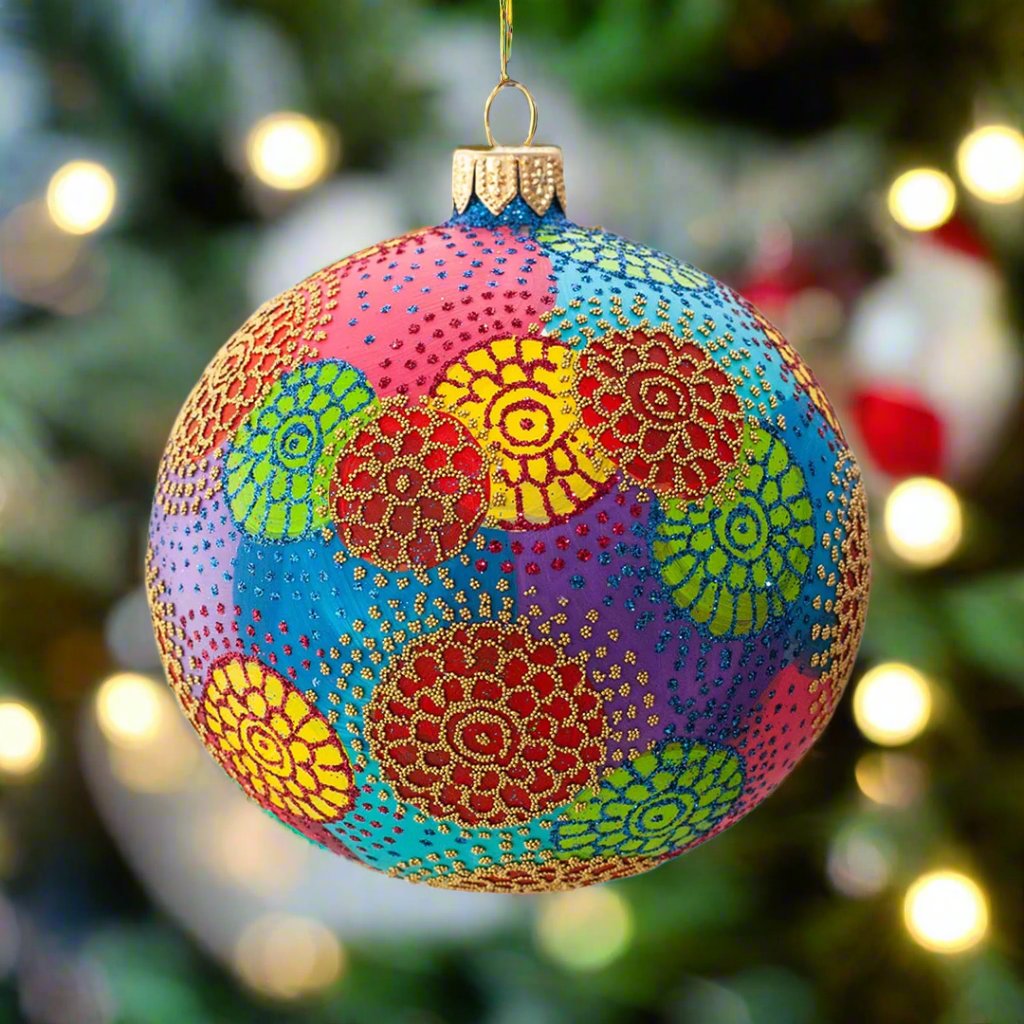 When Thomas Glenn couldn't find the ornaments he was looking for in Poland, he decided to design his own. As he started developing his own style, he began to create unusual colors and a unique process that made glitter part of the ornament's design instead of just being applied on top of it. This glass ornament was made entirely by hand in Poland — mouthblown into a mold and then handpainted and decorated with his signature extraordinary flair.