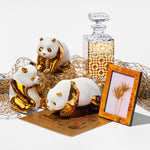 Considered a symbol of harmony, peace, and friendship, pandas are the embodiment of pure joy. Our family of these enchanting creatures is made of white porcelain with a handpainted 24-karat gold glaze, making an elegant and charming accent suitable for any décor.