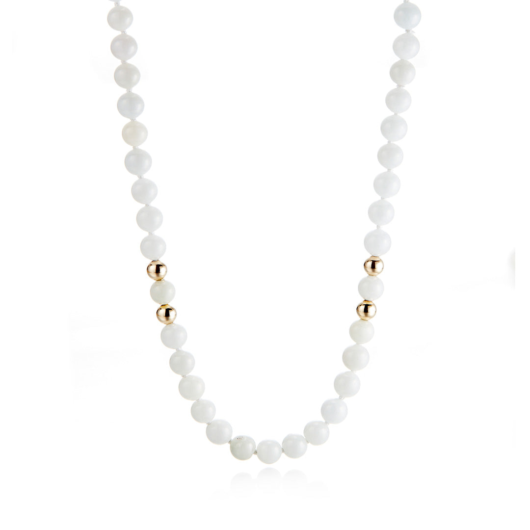 Gump's Signature 6mm White Jade & Gold Bead Station Rope Necklace