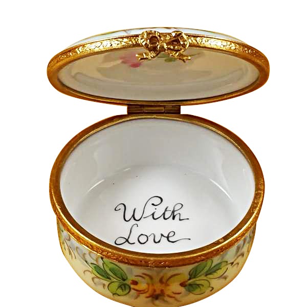 Limoges boxes were originally made in the tradition of tabatières (snuff boxes). And while their end use has changed over time, not much else has: Made from a pure white porcelain that’s produced only in Limoges, France, each piece is crafted and painted by hand, making it one of a kind — and impossible to be boxed in.