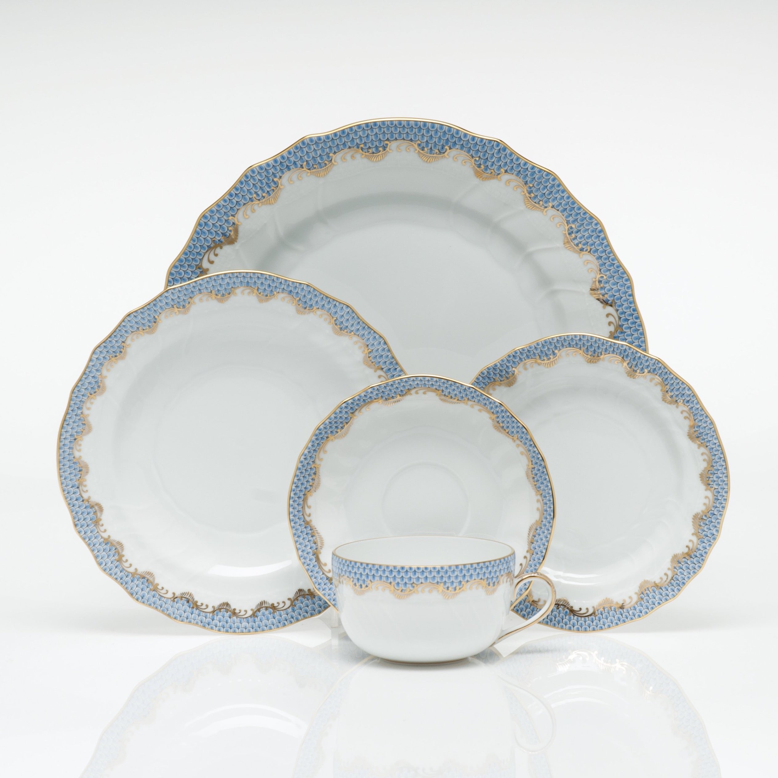 Herend Fish Scale Canton Tea Saucer, Light Blue