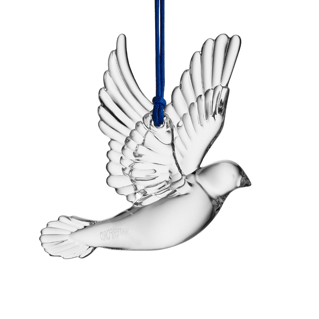A universal symbol of peace and hope, this elegant dove is sculpted in flight, with linear cuts on its wings and a contrasting smooth body. The crystal keepsake, crafted to reflect light brilliantly, is a gift they'll treasure year after year.