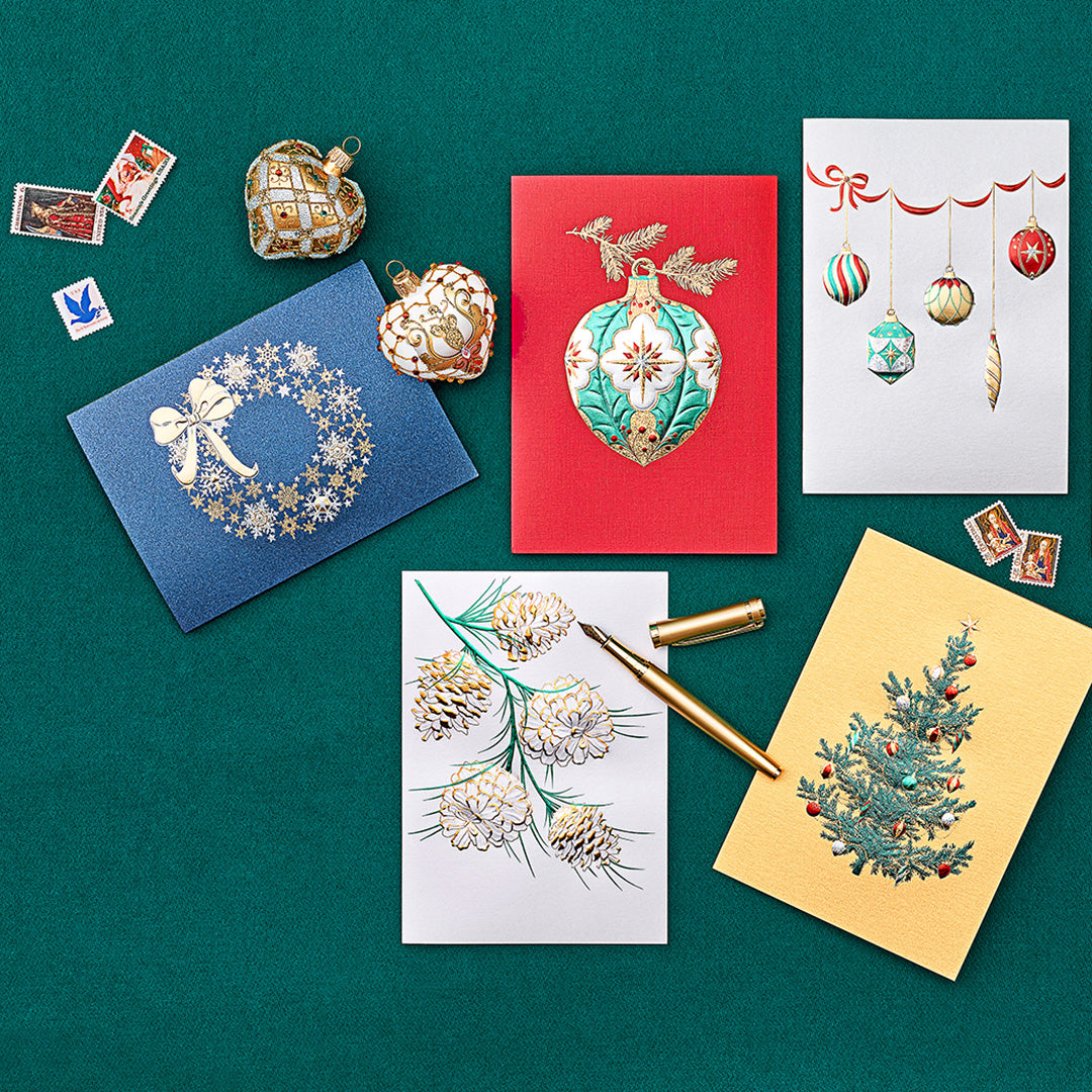 Paula Skene Tree with Ornaments Holiday Cards Set 8