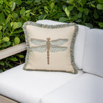A symbol of summer's lightness, a dragonfly design brings organic charm to this outdoor pillow. Made for both style and durability, it's handcrafted from weather-resistant fibers that stands up to the season of casual living and entertaining.