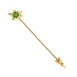 Playful yet precious, this late Victorian stick pin features a charming turtle rendered in 14-karat yellow gold. Seven vibrant green demantoid garnets form its shell, accented by a tiny diamond eye that lends a glint of personality. An endearing nod to turn-of-the-century whimsy, captured with exceptional craftsmanship.