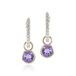 A soft shimmer with just enough swing — our earrings pair bezel-set amethysts with diamond-lined hoops in yellow gold.