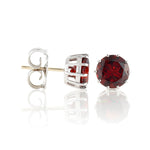 Elegant stud earrings featuring red garnets cut with multiple facets for enhanced radiance.