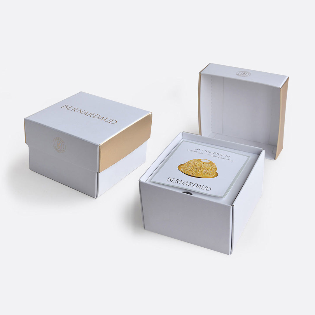 Bernardaud artisans use the same technique of hand-sculpting fine, bisque porcelain first demonstrated in the 17th century. The glow of a tealight candle (not included) shines through the raised and carved surface to contrast light against shadow, revealing a richly detailed design. Founded in Limoges, France in 1863, Bernardaud is steeped in the great French porcelain tradition. Highly regarded for their ability to create the perfect blend of classic and modern, the family-owned company upholds the philosophy of founders: preservation of technical expertise, the tradition of creativity and a passion for innovation. 3" diam. x 3"H.