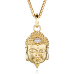 A quiet expression and gentle contours bring a sense of serenity to this sculptural gold pendant, inspired by traditional depictions of the Buddha. The finely textured crown is inset with a radiant diamond cluster, adding subtle brilliance to the symbolic form.