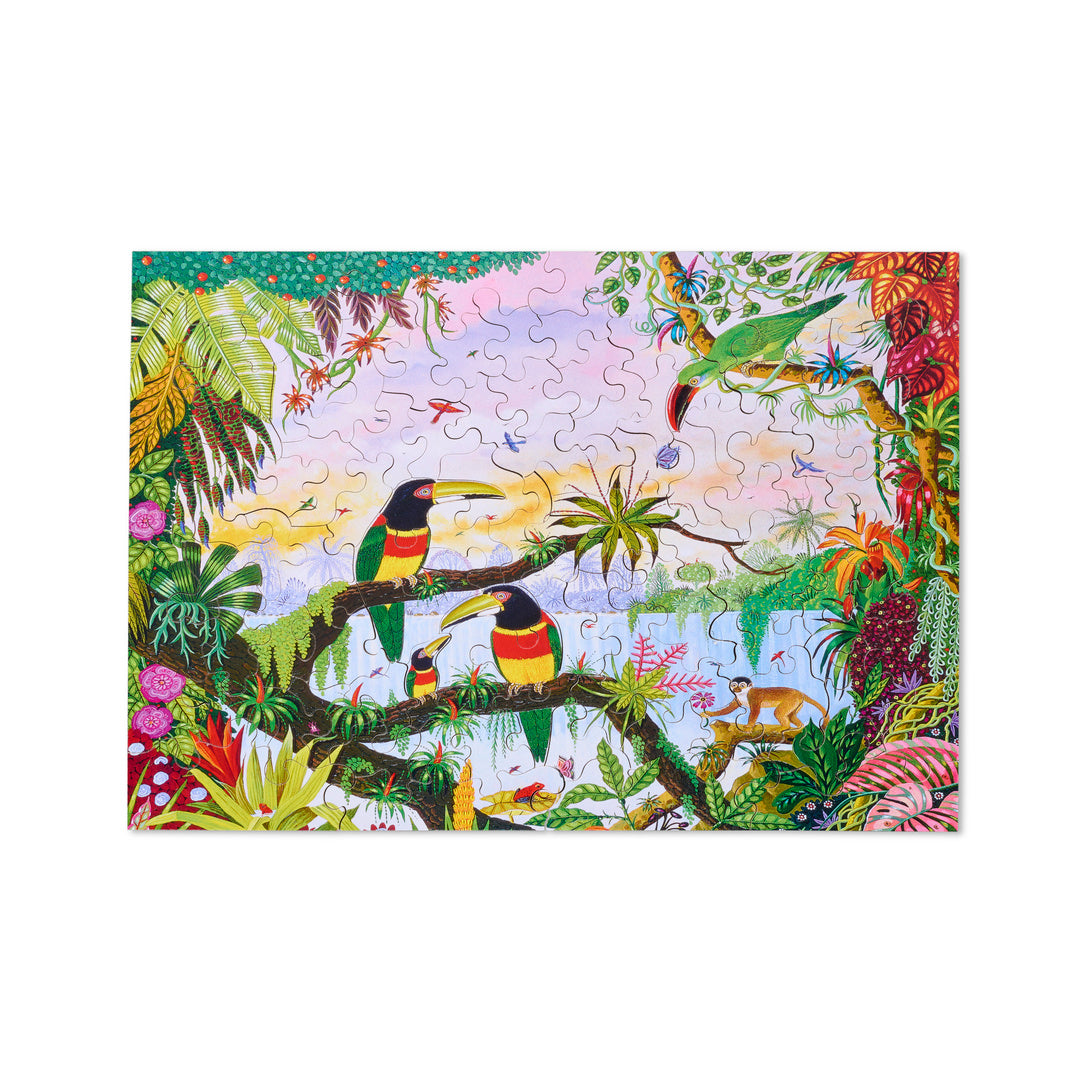 Vibrant wildlife and lush foliage come to life in this hand-cut wooden puzzle, crafted in France with 100 intricately shaped pieces. A playful challenge and a work of art in one, it’s an exotic escape into the heart of the jungle — without ever leaving your home.