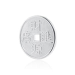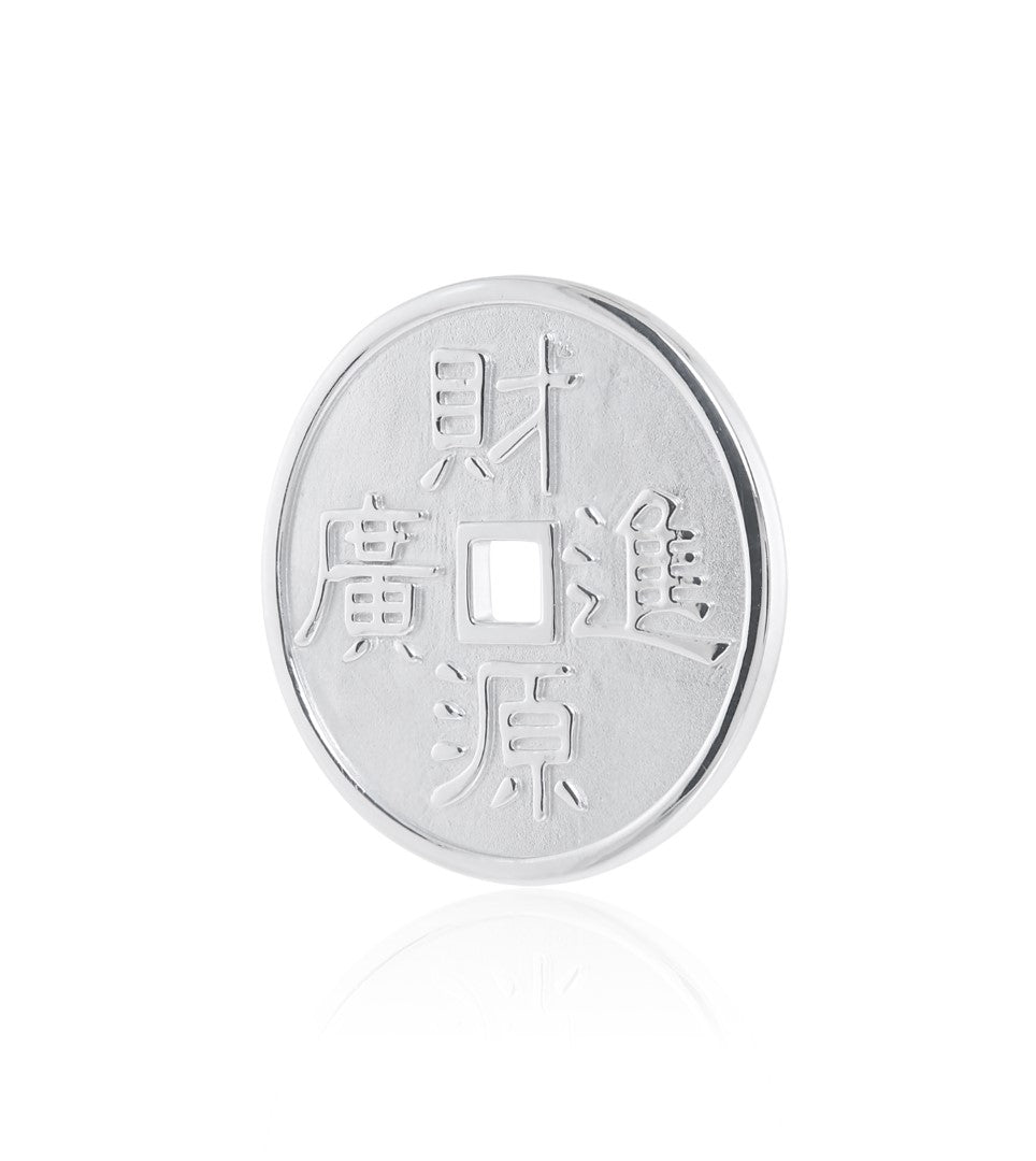A unique gift for a loved one, our sterling silver token translates to 'May wealth and prosperity flow,' a traditional Chinese expression wishing someone abundance or financial success. It can be hung on a necklace (not included) or displayed on a desk as a talisman for good luck.