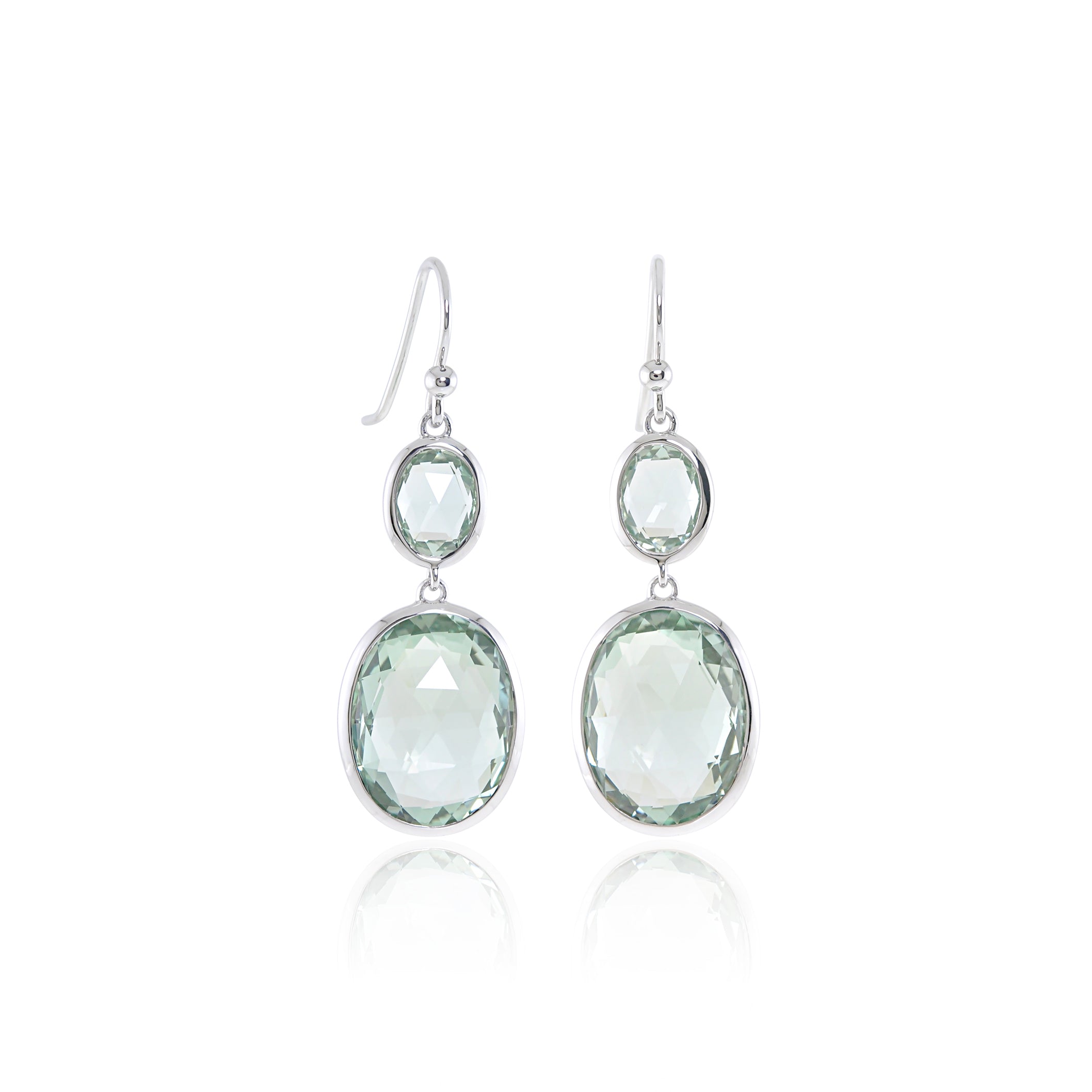 Gracefully swaying with your movement, our double drop earrings are set with green amethyst that glisten when they catch the light.